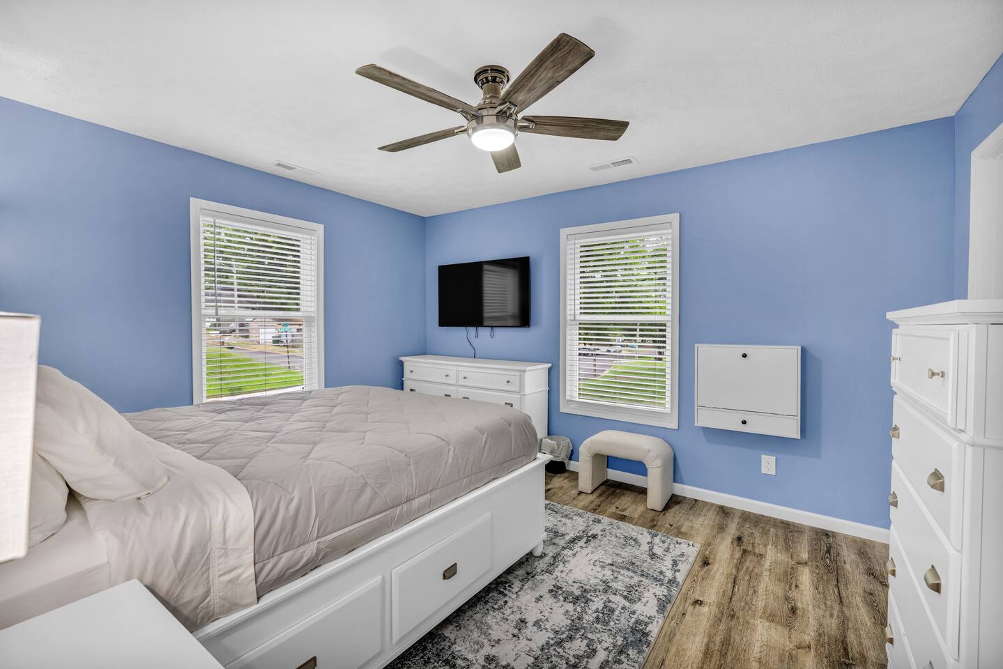 Our property is newly rehabbed, cozy, and comfortable with lots of amenities. There’s a queen bed in the main room with a twin over full bunkbed with a twin trundle that pulls out to accommodate 6. We have big screen smart TVs, washer, and dryer, ironing board, and comfortable furniture close to everything.